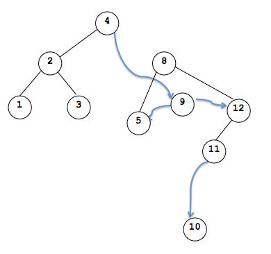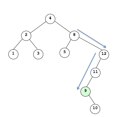 Now suppose we wanted to remove a node like 8. We cannot simply make 4 point to 8's child as there are 2 children. While it is possible to do something like make parent point to right child then attach left child to the left most subtree of the right right child, doing so would cause the tree to be bigger and is not a good solution.